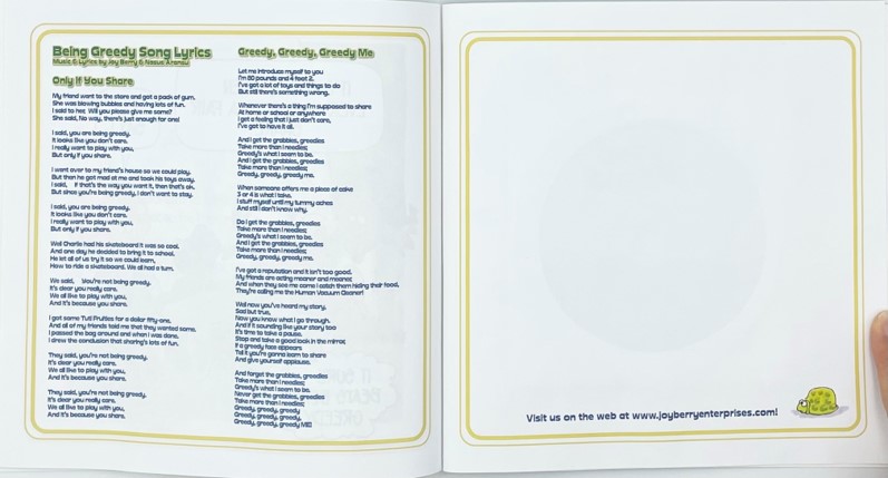Being Greedy explains the disadvantages of being greedy and encourages children to be more generous, CD includes Being Greedy Read-Along and two fun songs that reinforces message.