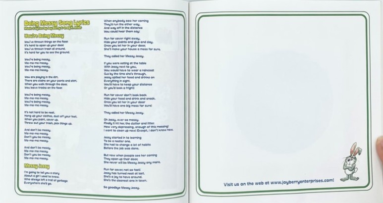 Being Messy discusses the problems caused by messiness and teaches children how to be neat. CD includes Being Messy Read-Along and two fun songs that reinforces message.