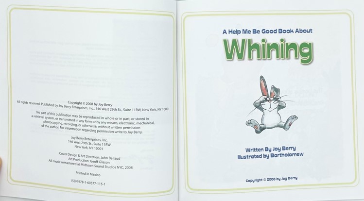 Help Me Be Good About Whining explains why children whine and encourages them to utilize more positive ways to get attention and have their needs met. Companion CD includes songs and read-along with Joy.