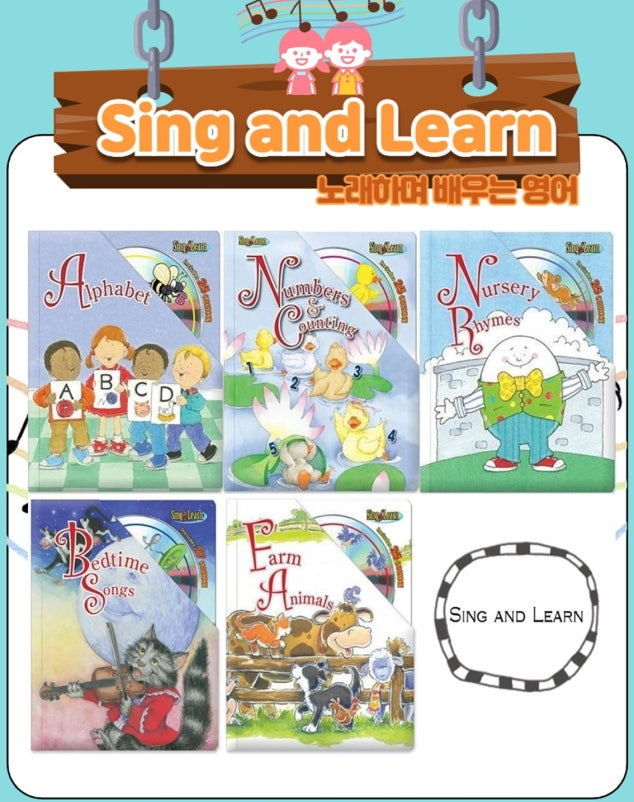 Sing & Learn 노래하고 배우는 영어 즐겁게 노래하며 배우는 Sing and Learn 시리즈는 각기 다른 주제로 책 한 권당 평균 25곡의 노래가 들어있어 자연스럽게 노래를 들으면서 영어를 익힐 수 있습니