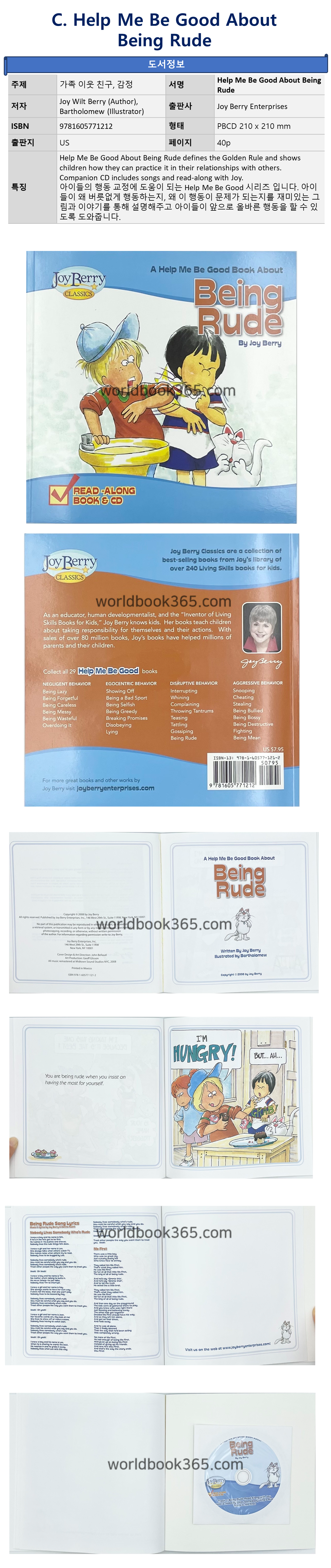 | Help Me Be Good (HMBG) 인성동화 학급문고 노래로배우는영어 | 5세에서 7세 사이의 어린이들의 잘못된 행동을 좋은 행동으로 대체하는데 도움을 주기 위한 시리즈 | Help Me Be Good About Being Rude Book and CD | Joy Berry | 9781605771212 | Help Me Be Good (HMBG) ,교육동화, 인성동화, 학급문고,노래로배우는영어,영어동화책, 영어그림책, 처음영어, 유아영어, 어린이영어책, 유치원영어, 초등영어, 조이베리, 인성동화, Joy Berry |