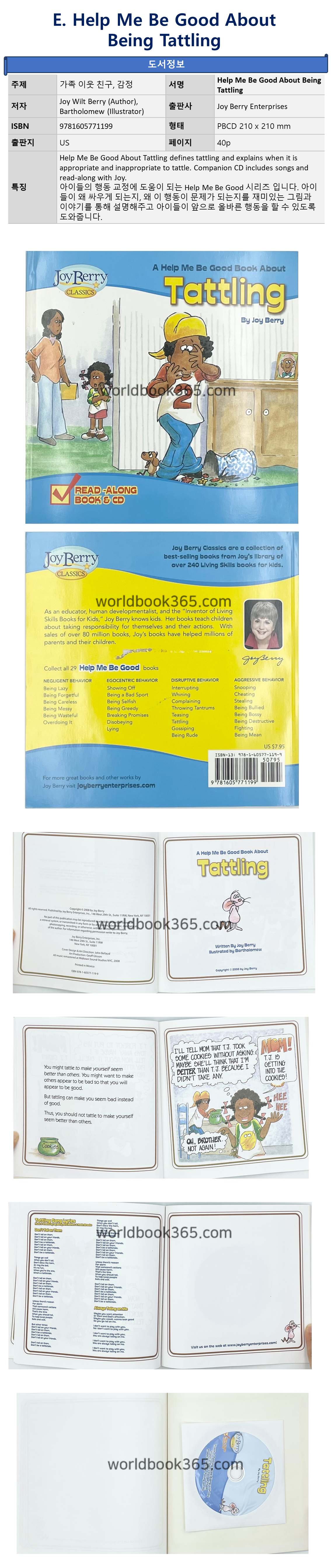 | Help Me Be Good (HMBG) 인성동화 학급문고 노래로배우는영어 | 5세에서 7세 사이의 어린이들의 잘못된 행동을 좋은 행동으로 대체하는데 도움을 주기 위한 시리즈 | Help Me Be Good About Tattling Book and CD | Joy Berry | 9781605771199 | Help Me Be Good (HMBG) ,교육동화, 인성동화, 학급문고,노래로배우는영어,영어동화책, 영어그림책, 처음영어, 유아영어, 어린이영어책, 유치원영어, 초등영어, 조이베리, 인성동화, Joy Berry |