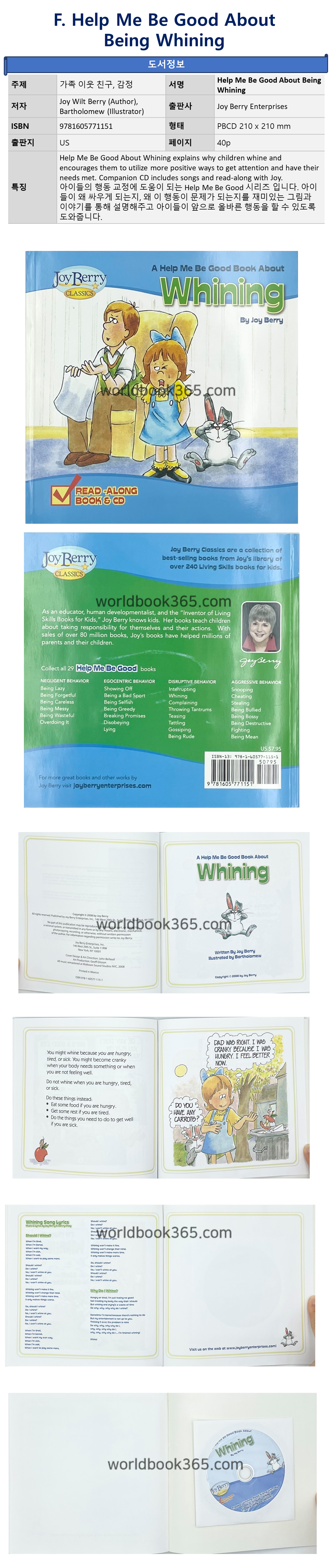 | Help Me Be Good (HMBG) 인성동화 학급문고 노래로배우는영어 | 5세에서 7세 사이의 어린이들의 잘못된 행동을 좋은 행동으로 대체하는데 도움을 주기 위한 시리즈 | Help Me Be Good About Whining Book and CD | Joy Berry | 9781605771151 | Help Me Be Good (HMBG) ,교육동화, 인성동화, 학급문고,노래로배우는영어,영어동화책, 영어그림책, 처음영어, 유아영어, 어린이영어책, 유치원영어, 초등영어, 조이베리, 인성동화, Joy Berry |