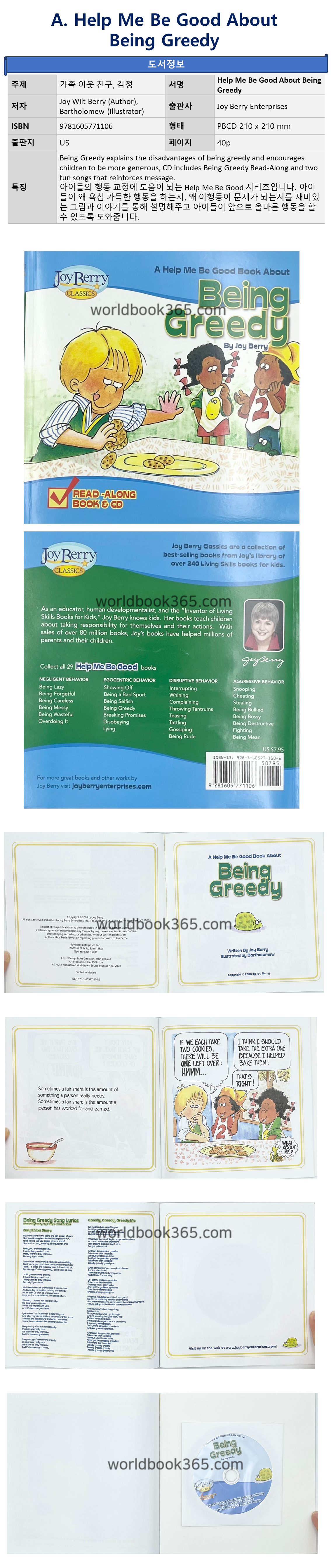 | Help Me Be Good (HMBG) 인성동화 학급문고 노래로배우는영어 | 5세에서 7세 사이의 어린이들의 잘못된 행동을 좋은 행동으로 대체하는데 도움을 주기 위한 시리즈 | Help Me Be Good About Being Greedy Book and CD | Joy Berry | 9781605771106 | Help Me Be Good (HMBG) ,교육동화, 인성동화, 학급문고,노래로배우는영어,영어동화책, 영어그림책, 처음영어, 유아영어, 어린이영어책, 유치원영어, 초등영어, 조이베리, 인성동화, Joy Berry |