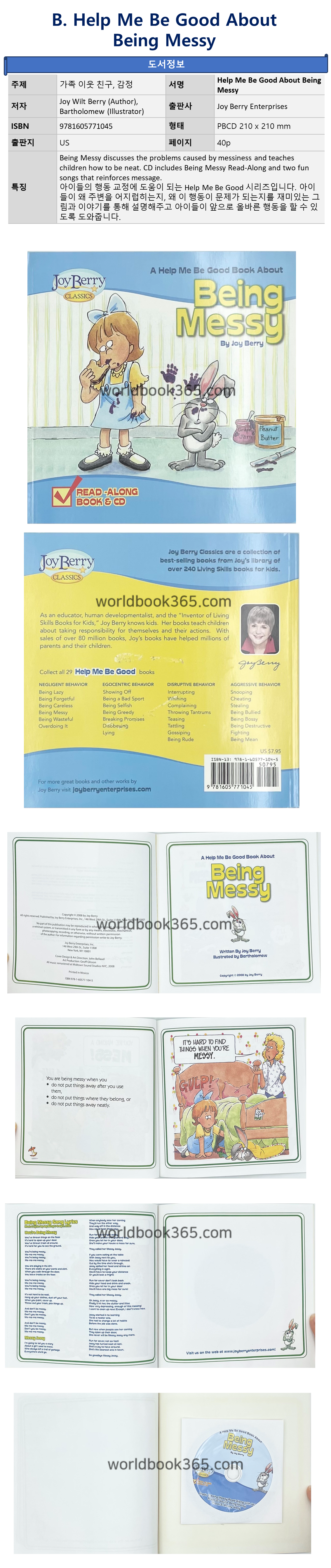 | Help Me Be Good (HMBG) 인성동화 학급문고 노래로배우는영어 | 5세에서 7세 사이의 어린이들의 잘못된 행동을 좋은 행동으로 대체하는데 도움을 주기 위한 시리즈 | Help Me Be Good About Being Messy Book and CD | Joy Berry | 9781605771045 | Help Me Be Good (HMBG) ,교육동화, 인성동화, 학급문고,노래로배우는영어,영어동화책, 영어그림책, 처음영어, 유아영어, 어린이영어책, 유치원영어, 초등영어, 조이베리, 인성동화, Joy Berry |