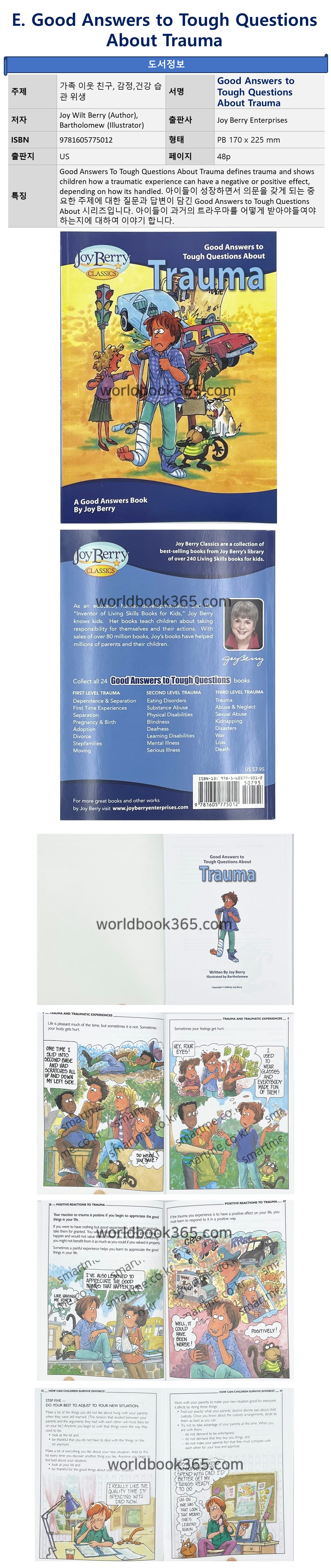 | Good Answers to Tough Questions (GATQ) 인성동화 학급문고 | 아이들이 성장하면서 의문을 갖게 되는 중요한 주제에 대한 질문과 답변이 담긴 Good Answers to Tough Questions About 시리즈입니다. 아이들이 과거의 트라우마를 어떻게 받아야들여야 하는지에 대하여 이야기 합니다. | Good Answers to Tough Questions About Trauma |